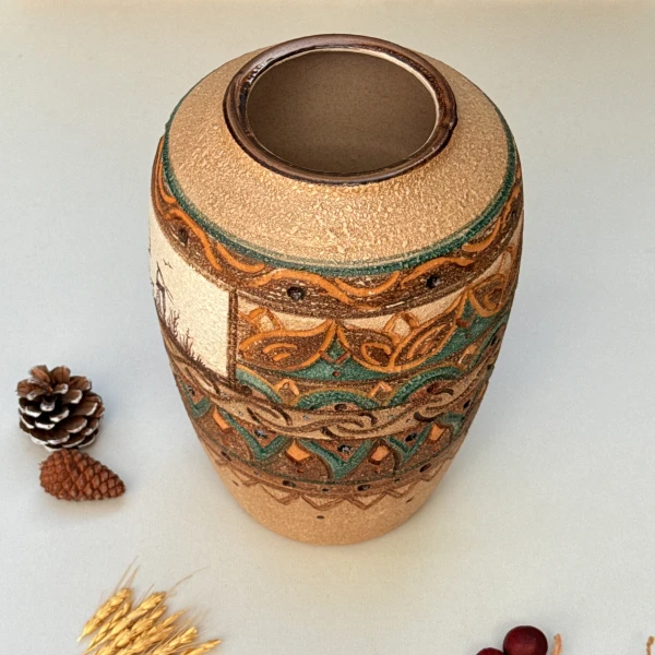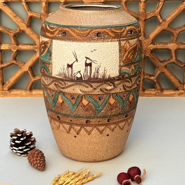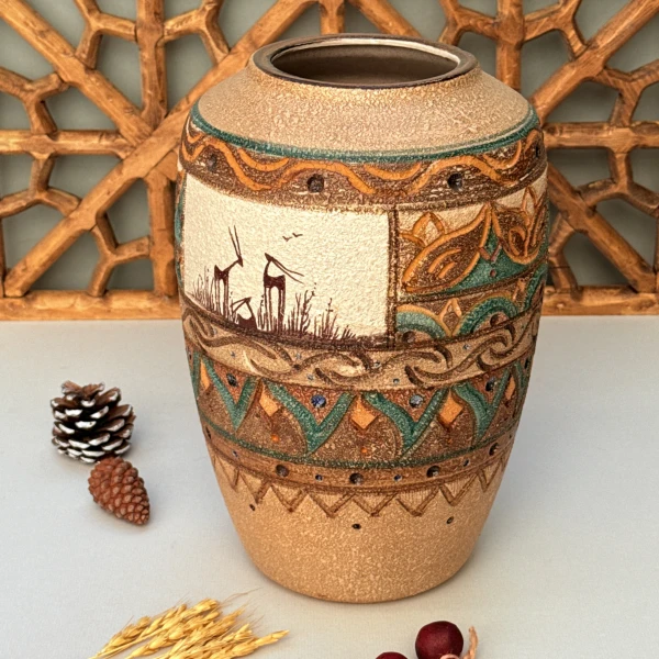 د.کاربرد : گلدان با نقش باستانی ایستاده مناسب برای دکوراسیون پذیرایی منزل