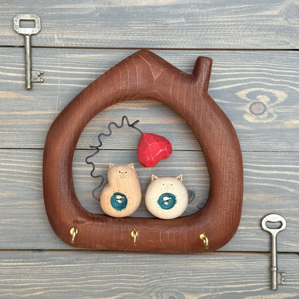قاب دیواری گربه ماهی به دل دو مجسمه کوچک طرح پنج