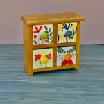 ب.مواد و تکنیک ساخت : قاب محصول چوب روس و راش با تکنیک های نجاری و خراطی و کشو های محصول به وسیله مواد اولیه تولید سرامیک با دمای پخت ۱۰۰۰ درجه می باشد.