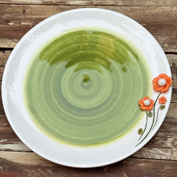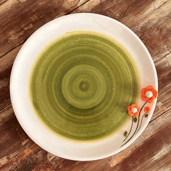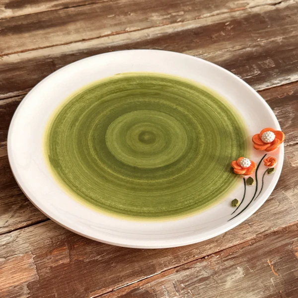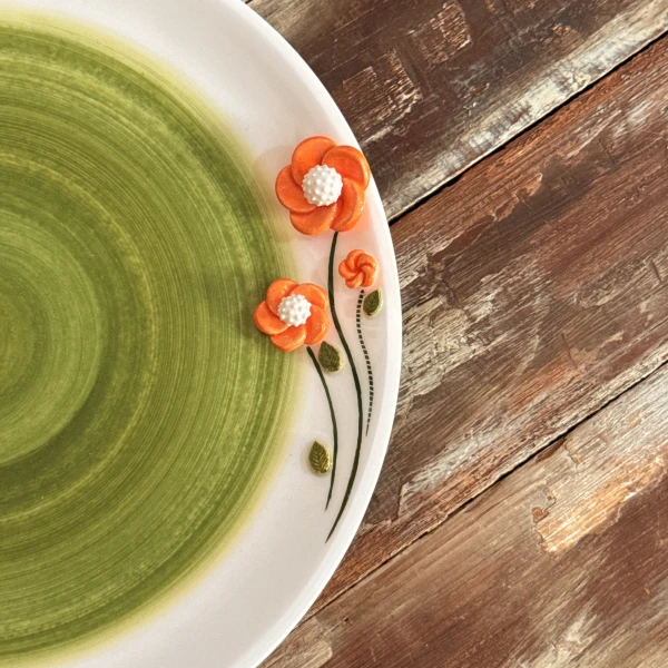 دیس گرد لبه دار سرویس گل بنفشه نارنجی برجسته