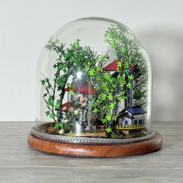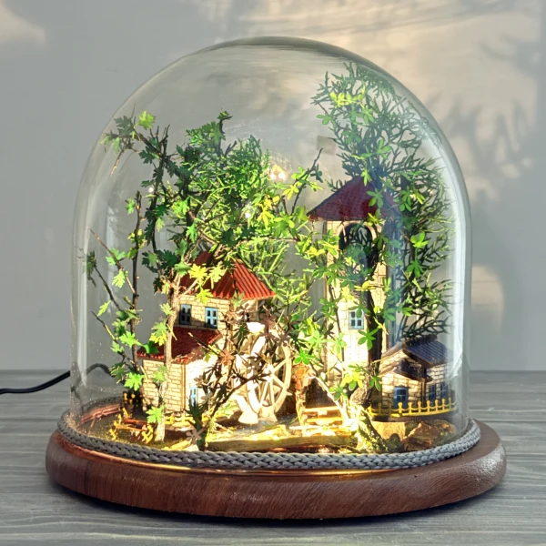 ب.مواد و تکنیک ساخت بدنه محصول : چوب و فیبر برش خورده با سی ان سی و مونتاژ شده با دست – چراغ محصول ال ای دی و حباب آن شیشه ای میباشد