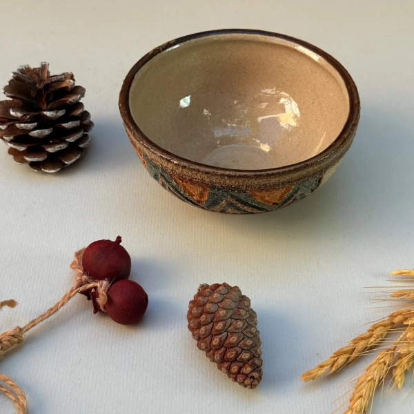 ب.مواد و تکنیک ساخت بدنه محصول : مواد اولیه ساخت سرامیک استون ور با دمای پخت ۱۱۰۰و نقوش باستانی
