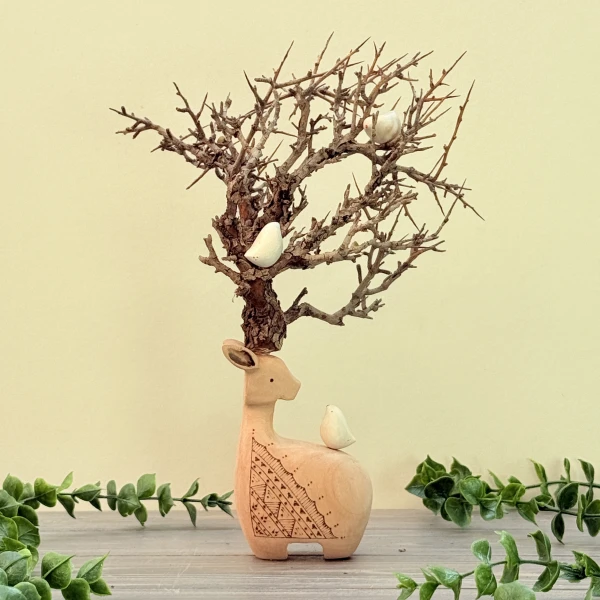گوزن با شاخ طبیعی سه پرنده طرح سه