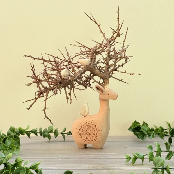 گوزن با شاخ طبیعی سه پرنده طرح شش
