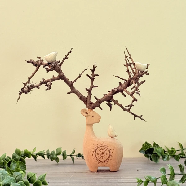 گوزن با شاخ طبیعی سه پرنده طرح پنج
