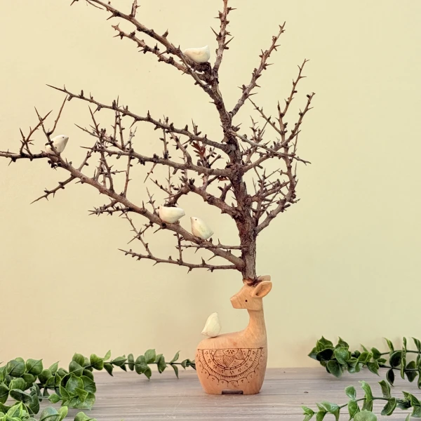 گوزن با شاخ طبیعی پنج پرنده طرح شش